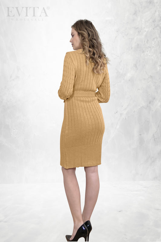 Turtle Neck fine Cable Knitted Long Sleeve Midi Jumper Dress